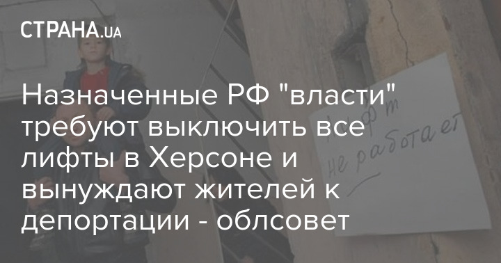 Назначенные РФ "власти" Херсонской области дали указание выключить все лифты в Херсоне. Об этом сообщил первый зампредседателя облсовета Юрий Соболевский в своем телеграм-канале.