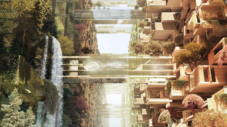 Обе стены города представляют собой зеркальную поверхность. Мегаполис будет функционировать с использованием только возобновляемой энергии, на каждом ярусе предусмотрена зеленая зона. Климат в городе будет искусственный: предполагается, что жители не будут чувствовать жаркого дыхания окружающей его пустыни.