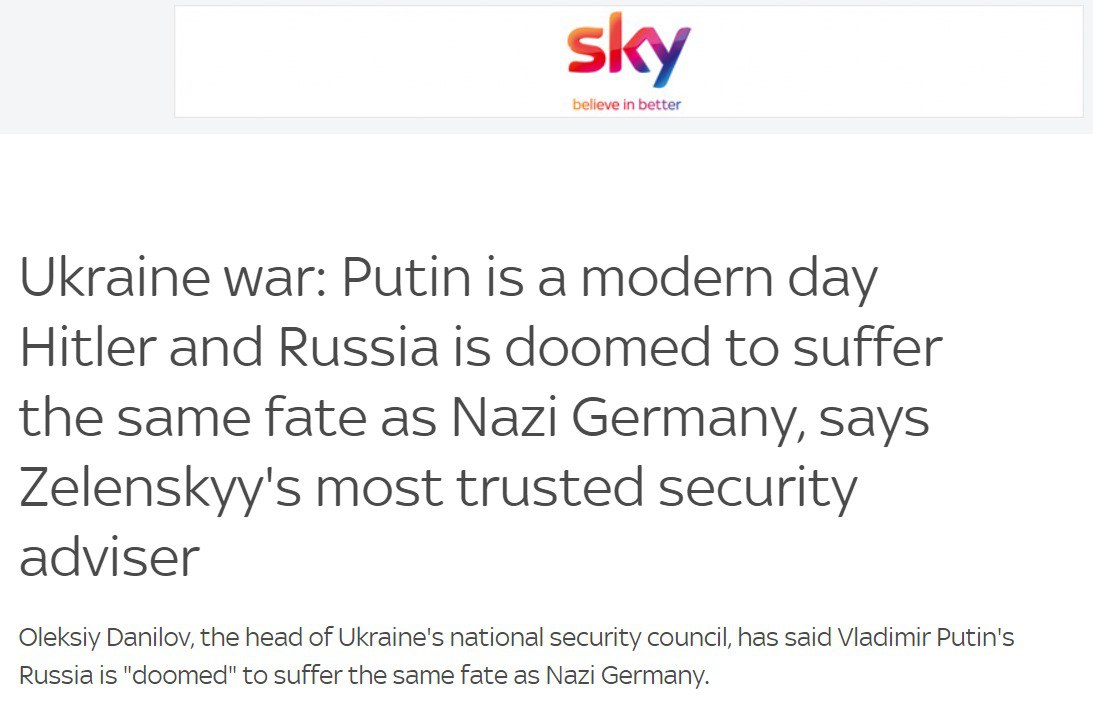 Такое заявление сделал секретарь СНБО Алексей Данилов в интервью телеканалу Sky News.