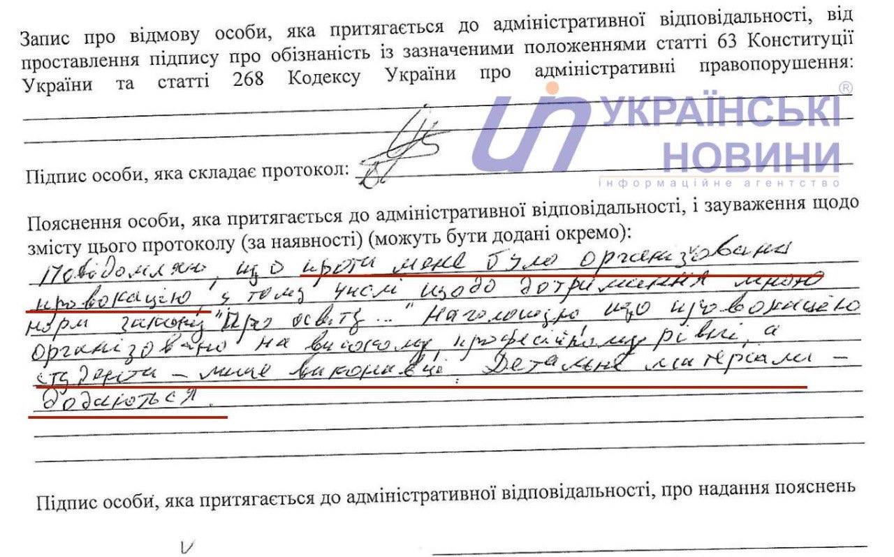 Через две с половиной недели после этого на доцента составлен протокол о нарушении языкового закона и еще через полторы недели – постановление мовного омбудсмена об админнарушении, которое влечет за собой штраф. Фамилию доцента не называют.
