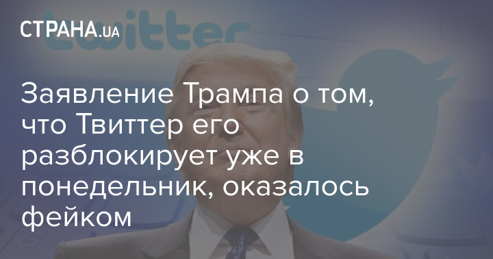 Заявление Трампа о том, что Твиттер его разблокирует уже в понедельник, оказалось фейком