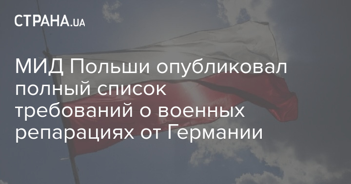 Министерство иностранных дел Польши опубликовало полный список требований о военных репарациях от Германии за ущерб, нанесенный во время Второй мировой войны.