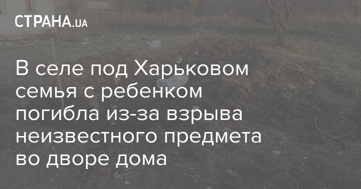 В Харьковской области в селе Федоровка Миролюбовского старостинского округа взорвался неизвестный предмет во дворе дома. Погибла семья с маленьким ребенком, сообщил накануне глава Лозовской общины Сергей Зеленский в Facebook.