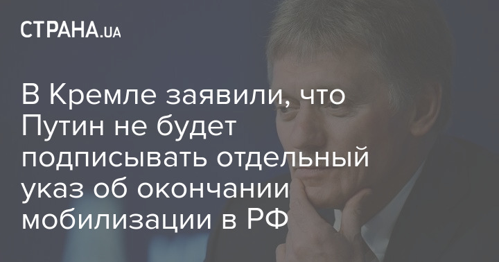Президент РФ Владимир Путин не будет издавать отдельный указ о завершении частичной мобилизации в России.
