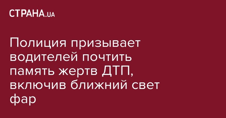 Национальная полиция призывает водителей 20 ноября почтить память погибших в автоавариях, включив ближний свет фар на транспортных средствах. Об этом сообщает пресс-служба Управления безопасности дорожного движения Нацполиции.