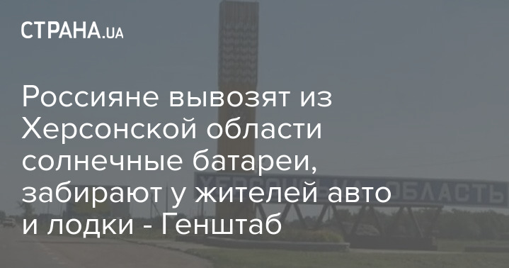 Россияне вывозят из Херсонской области солнечные батареи, забирают у жителей авто и лодки - Генштаб