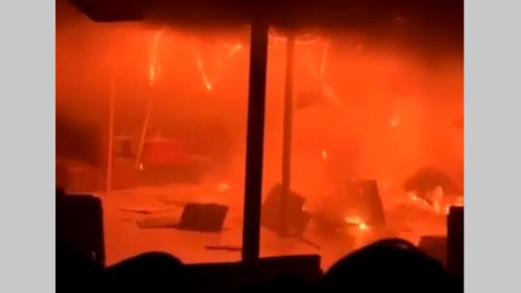 Из-за пожара в зале ночного клуба обрушились конструкции. Скриншот видео