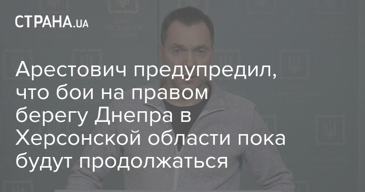 Арестович предупредил, что "бои на правом берегу ещё будут продолжаться некоторое время. А после ещё будет непростой период стабилизационных мероприятий".