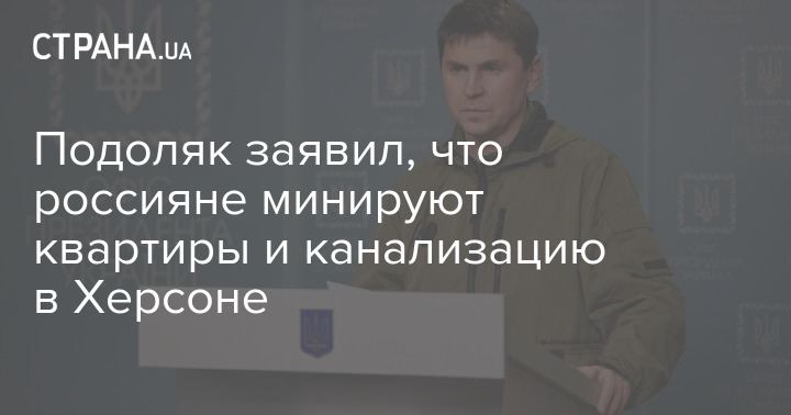 Советник главы Офиса президента Михаил Подоляк утверждает, что россияне минируют квартиры и канализацию в Херсоне.