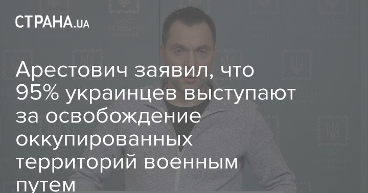 Советник Офиса президента Алексей Арестович заявил, что 95% населения Украины выступают за освобождение оккупированных территорий военным путем.
