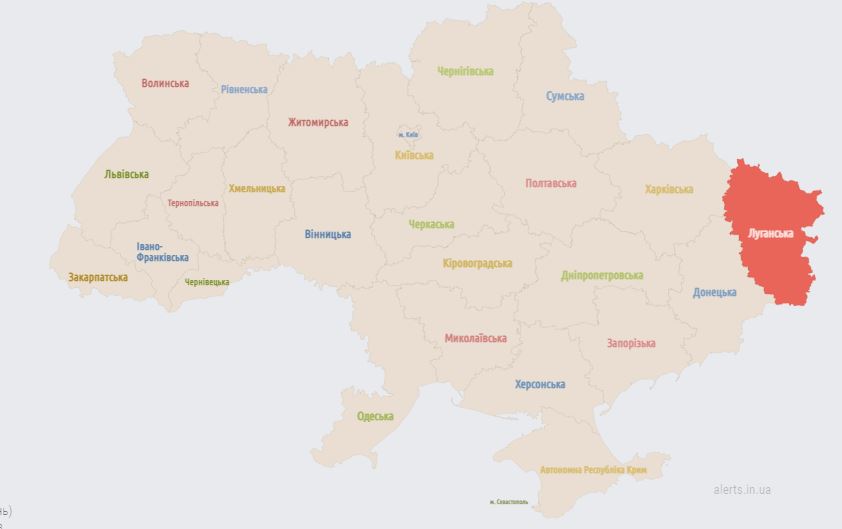 06.00 На данный момент воздушная тревога только в Луганской области, где она действует постоянно.