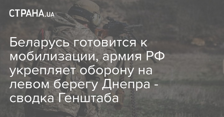 В Генеральном штабе Вооруженных сил Украины опубликовали оперативную сводку с фронта по состоянию на 18:00 14 ноября. Сообщается, что в Беларуси готовятся к мобилизации, а российские войска укрепляются на левом берегу Днепра.
