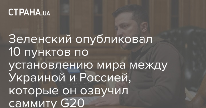 Президент Украины Владимир Зеленский опубликовал десять пунктов по установлению мира между Украиной и Россией, которые он изложил, обращаясь к участникам саммита G20.