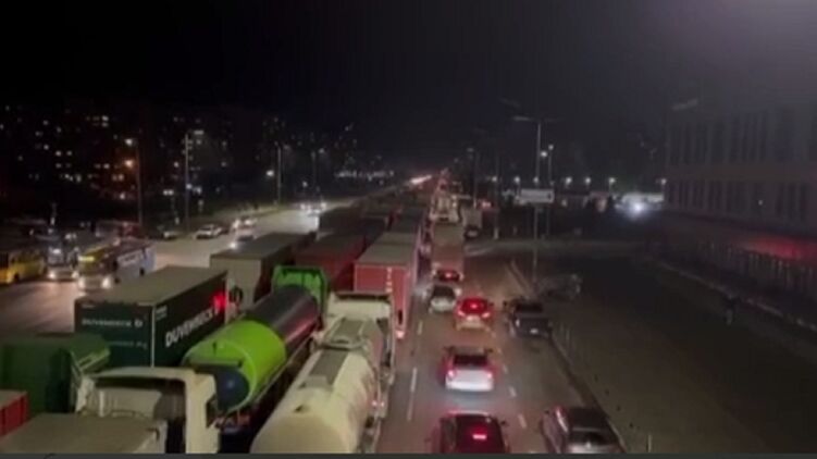 "Движение парализовано", - говорит очевидец, который снял огромную тянучку из грузовиков.