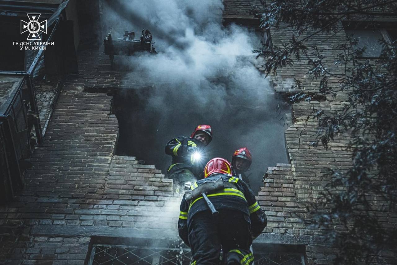 10.35 ГосЧС публикует фото спасательных работ в доме, который пострадал во время вчерашних ракетных ударов по Киеву.