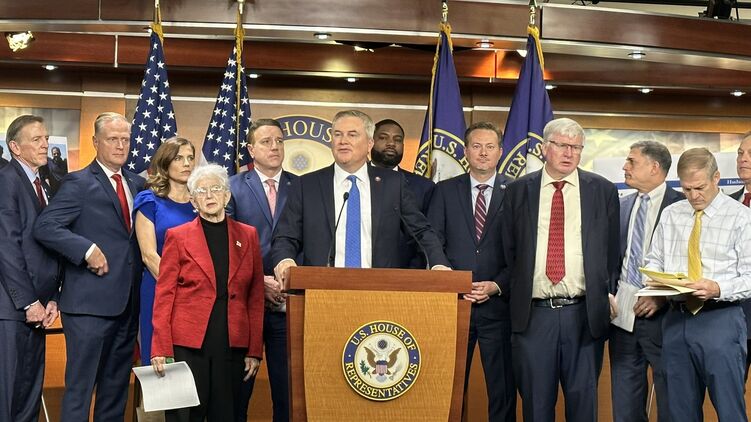Комер (за трибуной) пообещал расследование дел семейства Байденов. Фото: /twitter.com/RepJamesCome