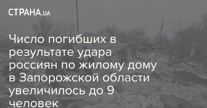 Число погибших в результате удара РФ по дому в Вольнянске Запорожской области выросло до 9 человек.