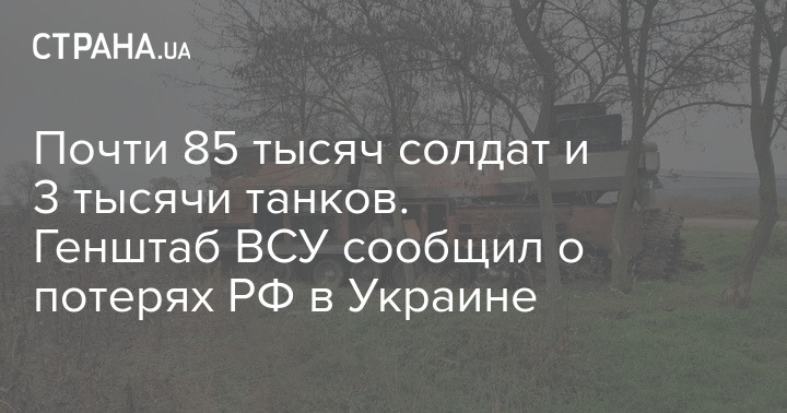 Почти 85 тысяч солдат и 3 тысячи танков. Генштаб ВСУ сообщил о потерях РФ в Украине