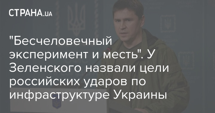 Советник главы Офиса президента Михаил Подоляк дал своё объяснение, почему Россия бьет по инфраструктуре Украины.