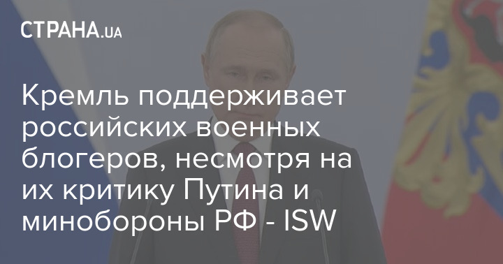 Кремль поддерживает российских военных блогеров, несмотря на их критику Путина и минобороны РФ - ISW