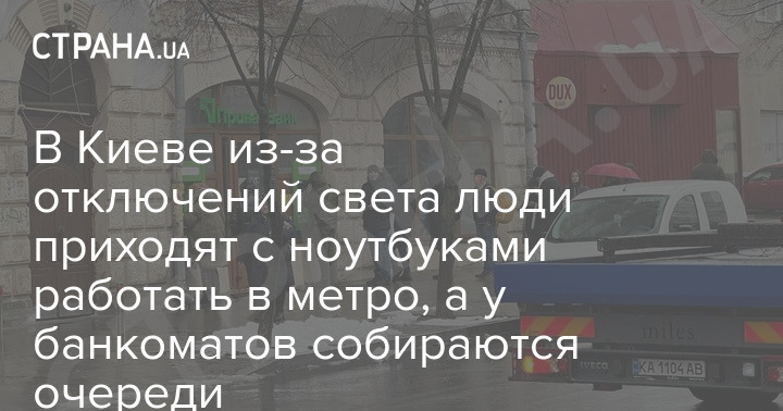 В Киеве из-за отключений света люди приходят с ноутбуками работать в метро, а у банкоматов собираются очереди