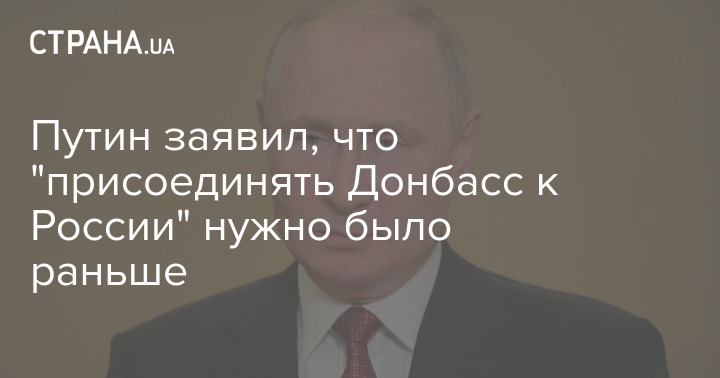 Президент РФ Владимир Путин заявил, что "присоединять Донбасс к России" нужно было раньше.