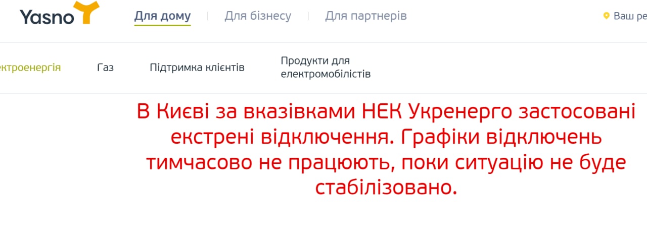 В Киеве по-прежнему действует режим аварийных отключений света, сообщают в компании Yasno.