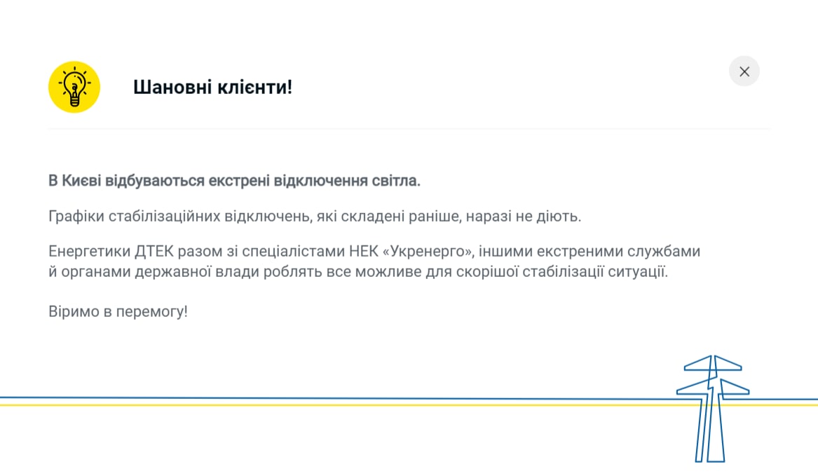 Напомним, накануне в ДТЭК заявили, что в Киеве будут стараться давать свет по 2-3 часа два раза в день каждому потребителю.
