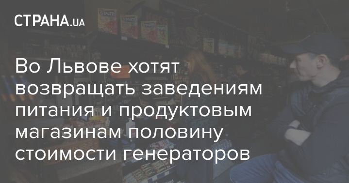 Во Львове хотят возвращать заведениям питания и продуктовым магазинам половину стоимости генераторов