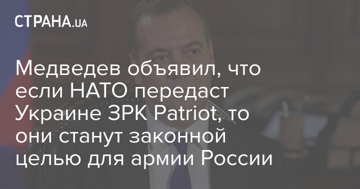 Медведев объявил, что если НАТО передаст Украине ЗРК Рatriot, то они станут законной целью для армии России