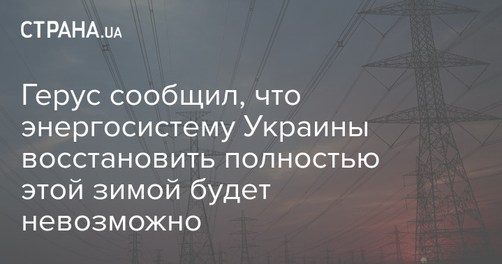 Герус сообщил, что энергосистему Украины восстановить полностью этой зимой будет невозможно