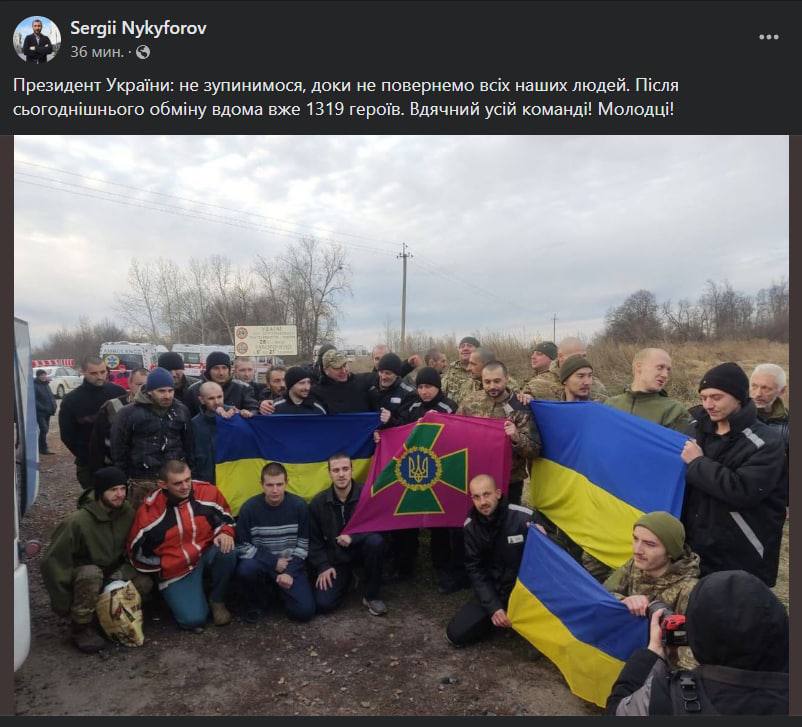 - Рассказал о сегодняшнем обмене пленными: вернулись 4 офицера, 46 сержантов и рядовых.