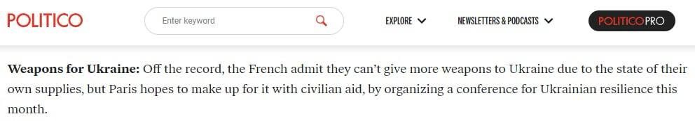 11.30 Франция не может поставлять больше оружия Украине из-за истощения своих собственных запасов, но Париж надеется компенсировать это гражданской помощью, организовав в декабре конференцию по украинской устойчивости, сообщает Politico со ссылкой на источники.