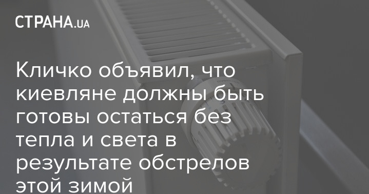 Кличко объявил, что киевляне должны быть готовы остаться без тепла и света в результате обстрелов этой зимой