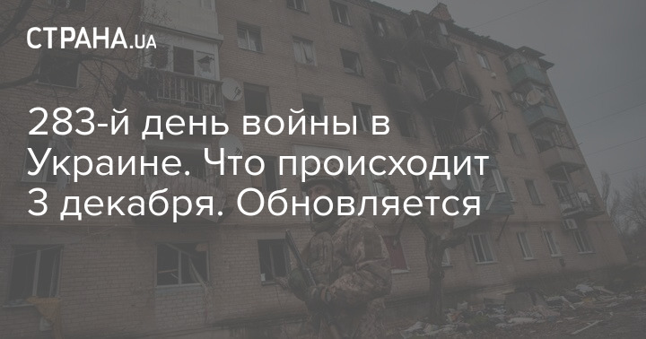 В субботу, 3 декабря, в Украине идет уже 283-й день войны с РФ.