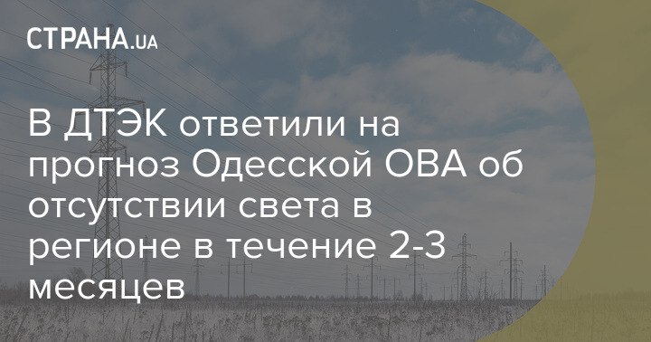 В ДТЭК "Одесские электросети" прокомментировали прогноз Одесской областной военной администрации об отсутствии света в регионе в ближайшие 2-3 месяца.