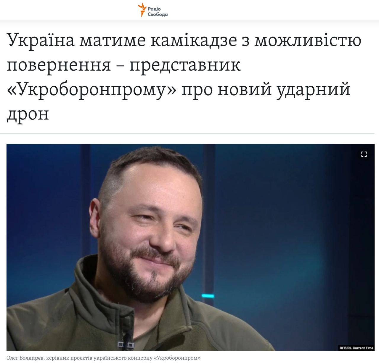 "Говоря об ударном беспилотнике, подразумевается вариант камикадзе. Но мы, украинцы, очень жадные люди. У нас будут камикадзе с возможностью возвращения", - уточнил Болдырев, пояснив, что "возможность возвращения" означает способность дрона атаковать вражеские цели несколько раз. Дальность полета новых БПЛА составляет 1000 километров, а вес боевой части – 75 килограммов.