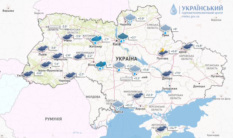 Прогноз погоды в Украине на 12 декабря от Укргидометцентра