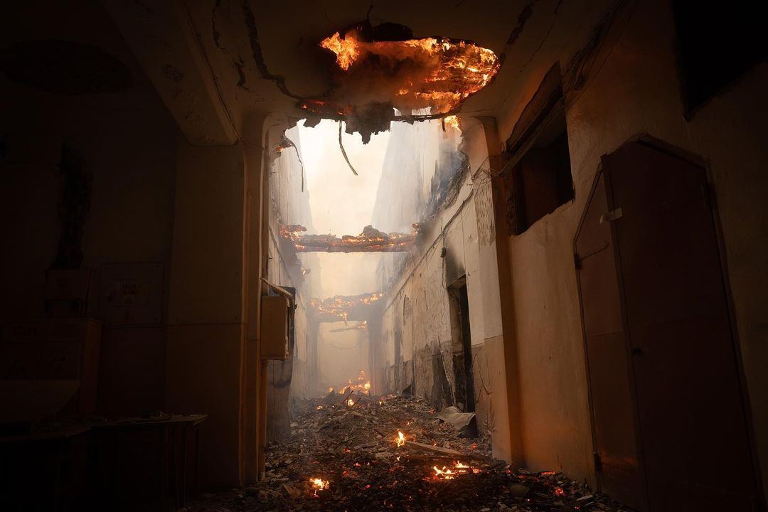 8:10 Последствия ночного удара по Купянску. Ракета С-300 попала в двухэтажное админздание, разгорелся пожар.