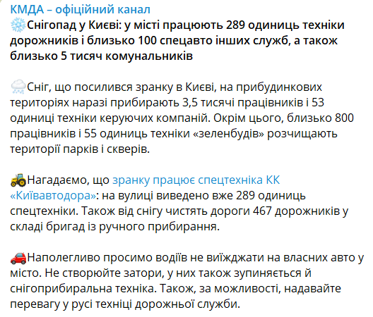 В Киеве сейчас сильный снегопад, который начался еще ночью. Власти области предупреждают о гололеде на дорогах и сильных порывах ветра (15-18 метров в секунду), столичные власти отчитываются, что с ночи на дорогах работает снегоуборочная техника.