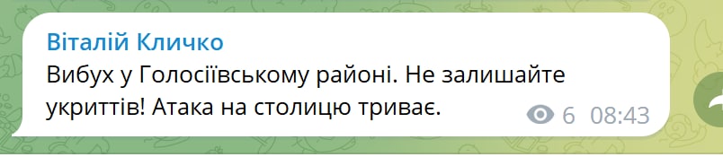 09:44 Взрыв в Голосеевском районе Киева подтвердил мэр Кличко.