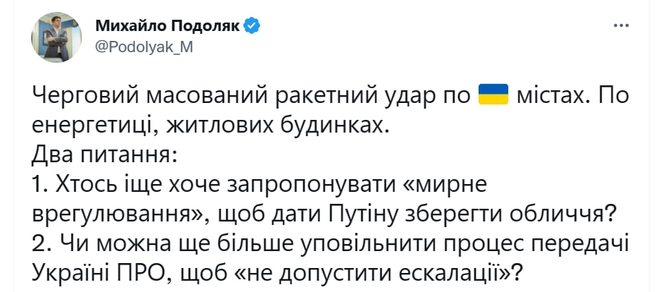 23:20 Алексей Арестович, похоже, не очень верит в то, что Украине дадут ракеты большой дальности.