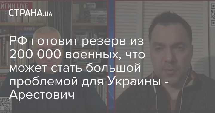 Россия готовит резерв из 200 000 военных, и это "может стать большой проблемой для нас", заявил советник Офиса президента Алексей Арестович.