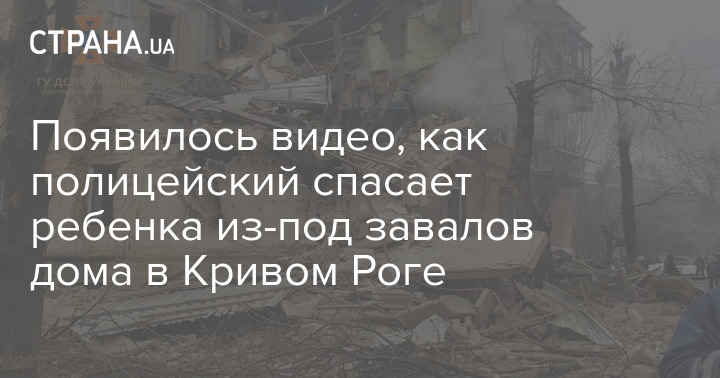 Патрульная полиция Кривого Рога опубликовала видео, на котором полицейский спасает ребенка из-под завалов дома, в который вчера попала российская ракета.