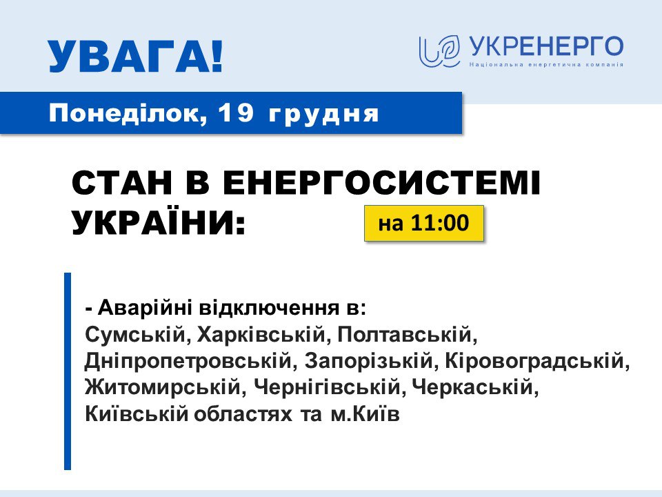 Отмечается, что после этого в энергосистеме Украины на утро 19 декабря сложилась тяжелая ситуация.