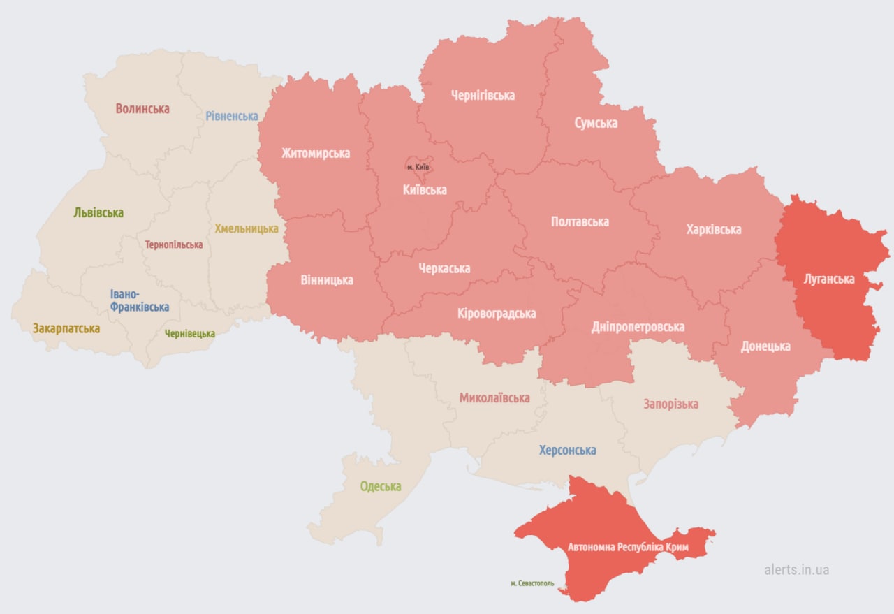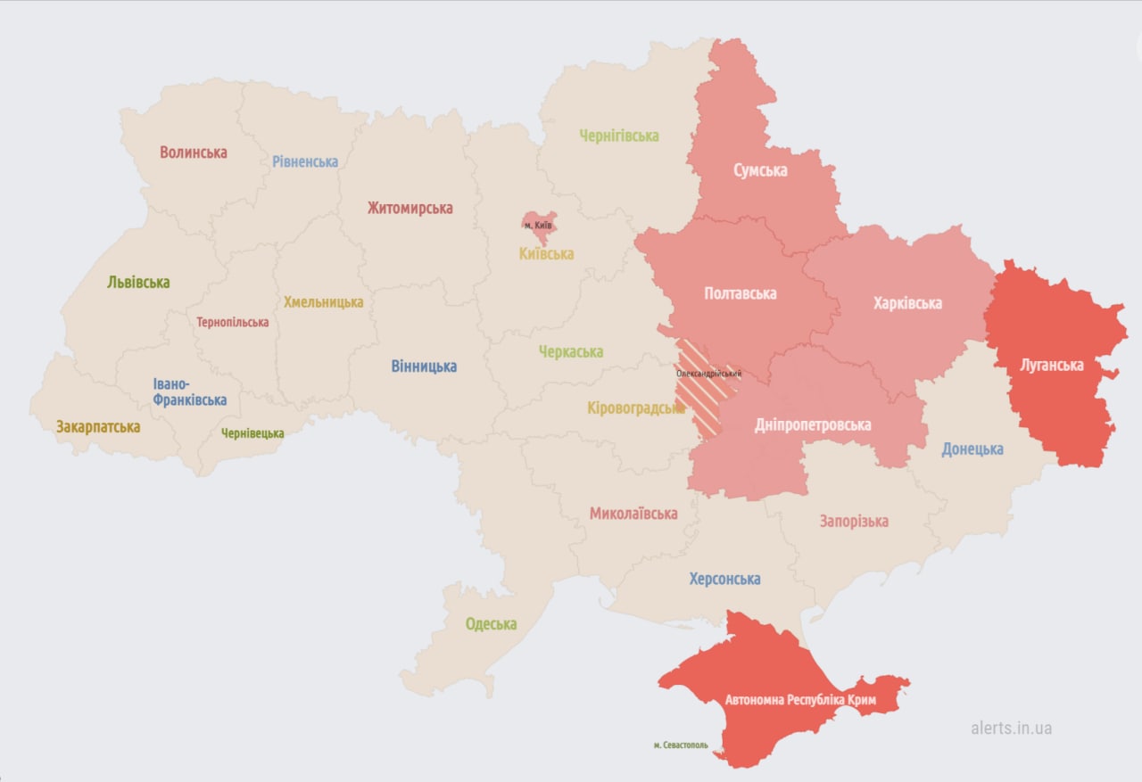 22.10 Воздушная тревога в восточных и части южных областей.