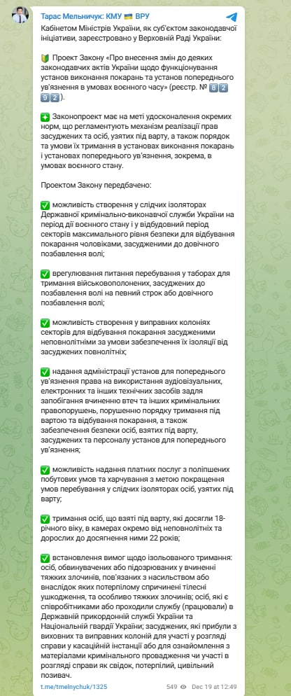 «Я поддерживаю соответствующие изменения в законодательстве, принятые Верховной Радой Украины, и прошу президента подписать закон. Мое мнение четко отражает позицию командиров группировок и воинских частей, требовавших системного решения этого комплекса вопросов», – написал главком в своем телеграм-канале.