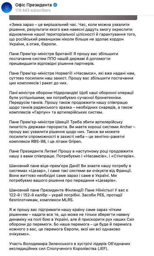 Выступая на встрече лидеров Соединенных экспедиционных сил Соединенного Королевства, президент Украины попросил: