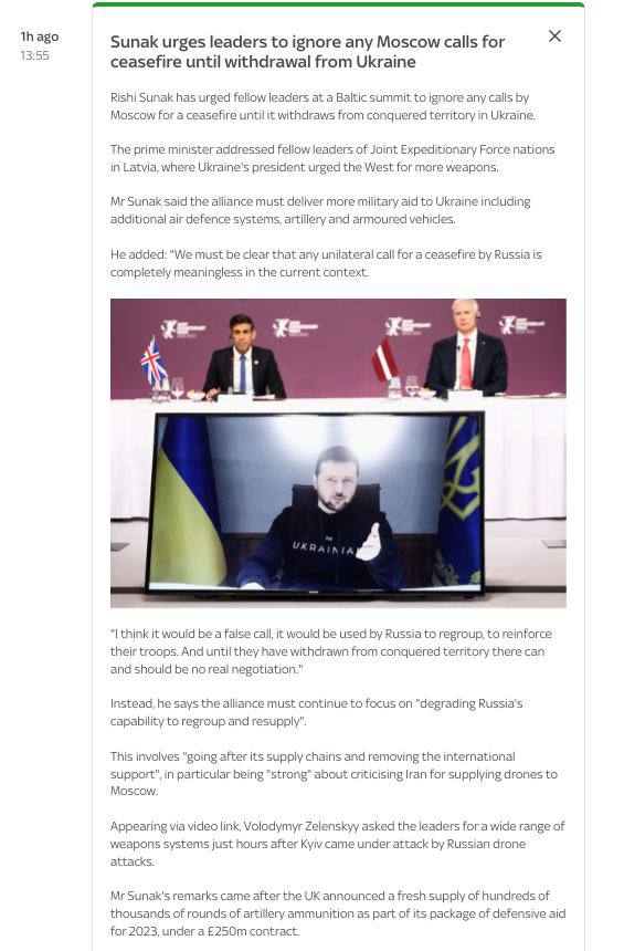- Сообщил о своем обращении к лидерам объединения стран Северной Европы с призывом дать оружие и ПВО.