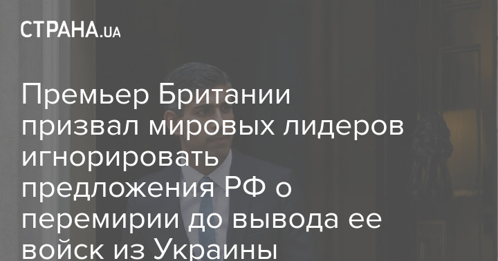 Премьер Британии Риши Сунак призвал мировых лидеров игнорировать любые предложения Москвы о перемирии, пока она не выведет свои войска из Украины.